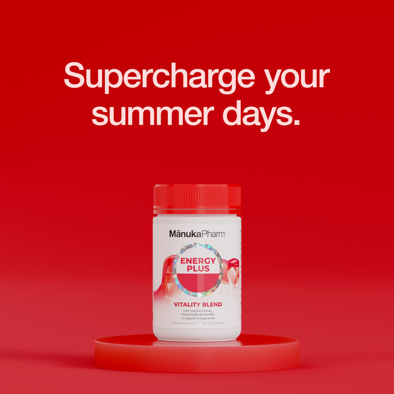 An energy supporting super-powder vitality blend including enXtra™, B Vitamins, Blackcurrant and Beetroot juice powder, infused with the goodness of our New Zealand Manuka Honey powder
