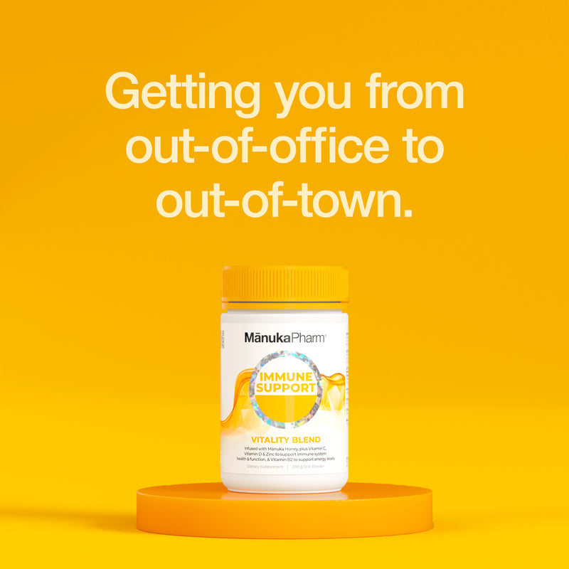 A zesty lemon flavoured vitality blend including the synergistic combination of Vitamin C, Zinc, Vitamin D, infused with the goodness of our New Zealand Manuka Honey powder.
